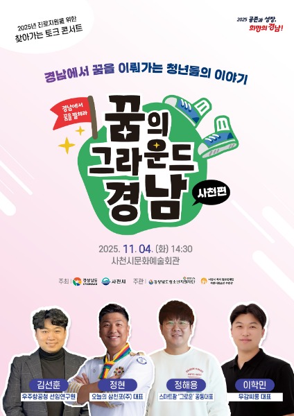 경남도(도지사 박완수)는 4일(화) 오후 2시 사천 문화예술회관 대공연장에서 경남 청소년 꿈 아카데미 찾아가는 토크 콘서트를 개최했다.