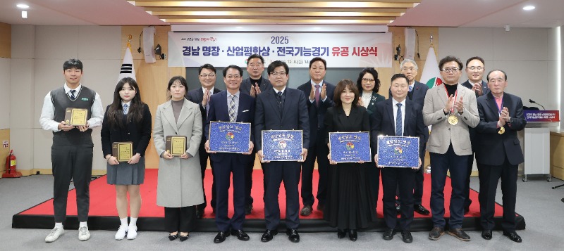 경남도는 8일 오후 도청 도정회의실에서 ‘2025 경남 명장‧산업평화상 및 전국기능경기 유공 시상식’을 개최하고, 올해의 경남 명장과 산업평화상, 전국기능경기대회 유공자에게 명장 증서와 상패 등을 수여했다. 시상식에는 수상자 및 가족 등 50여 명이 참석했다.
