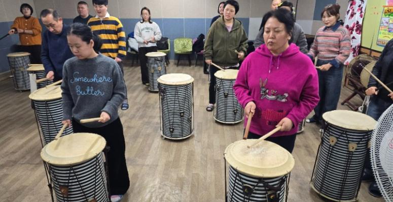 뜨레봄의 발달장애인들이 난타 배우기에 열심이다.강사의 하나,둘, 셋,넷, 구령과 노래소리에 맞추어 율동을 하며 힘차게 난타를 두드린다. 발달장애인주간활동센터 뜨레봄은 난타배우기 프로그램을 통해 문화체험의 기회를 제공한다. ...