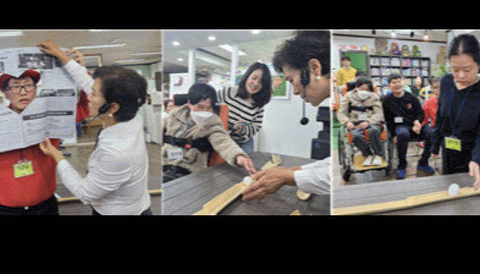 뜨레봄의 발달장애인이 마술공연을 관람하며 신기함에 빠진다.신문을 접어 하트를 만드는 마술을 배우며 달걀을 조심스럽게 굴려 대나무길을 따라 살짝살짝 밀며 대나무채를 들고 함께 박수치며 즐거운 율동을 함께 한다.발달장애인주간활동센터 뜨레봄의 발달장애인들이 다양한 소품을 이용하며 함께 율동을 즐기며 즐거움에 빠진다. ...