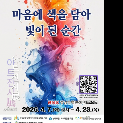 (재)경상남도사회서비스원(원장 조철현) 경상남도장애인종합복지관은 2026년 4월 7일부터 4월 23일까지 경남은행 본점 아트갤러리(창원시 마산회원구 소재)에서 “「마음에 색을 담아 빛이 된 순간」장애인 문화예술 아트전시展”을 개최한다.이번 전시는 의령군발달장애인주간활동제공기관, 누리보듬사회적협동조합, 발달장애인주간활동센터뜨레봄과 함께 장애...