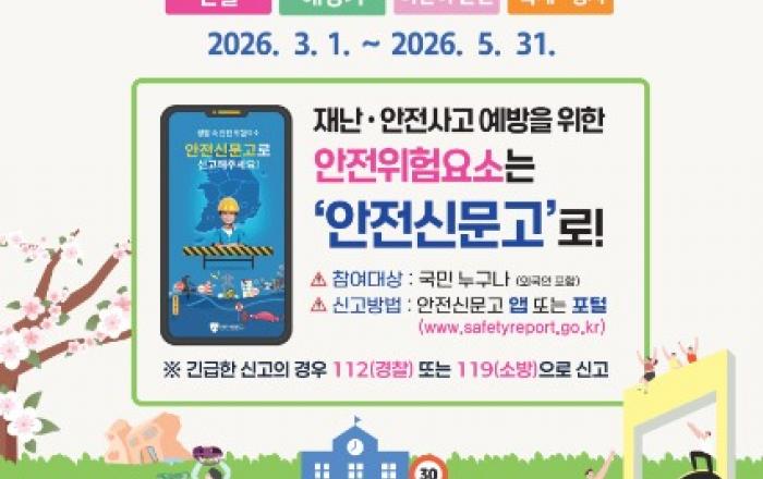 경남도, 봄철 재난·안전 위험요소 집중 신고기간 운영- 3~5월 산불·해빙기·어린이 안전·축제·행사 등 집중 신고- 안전신문고 앱 통해 누구나 신고 가능…우수 신고자 포상 실시 경상남도(도지사 박완수)는 봄철 발생 가능성이 높은 재난·안전 위험요소를 사전에 제거하고 도