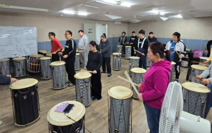 뜨레봄의 발달장애인들이 난타를 두드리며 힘찬 하루를 보낸다.하나,둘, 셋,넷, 하는 소리에 맞추어 난타를 두드리고 멈추기를 연습하고 힘차게도 두드려보며 한껏 신이나 있다.발달장애인주간활동센터 뜨레봄의 난타배우기 체험활동을 통해 발달장애인들에게 보다 활기찬 하루