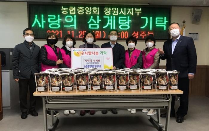 농협중앙회창원시지부, 사랑의 삼계탕 기탁농협중앙회창원시지부(지부장 박성호)은 29일 월요일 성주동(동장 최영숙)을 찾아 사랑의 삼계탕 80개(80만원상당)를 기탁하였다.농협중앙회창원시지부 박성호 회장은 “날씨가 추워지고 코로나19가 장기화 되어 모두가 힘든 시기로 지역