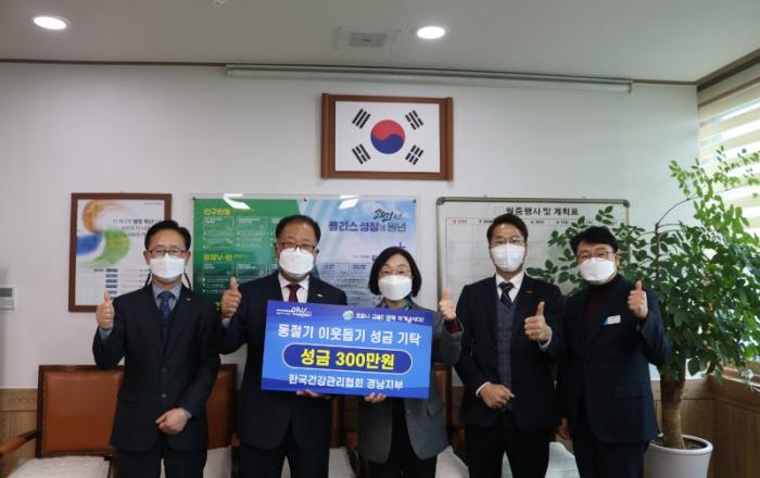 한국건강관리협회 경남지부, 창원시에 이웃돕기 성금 기탁동절기 실직 위기가정에 성금 300만원창원시(시장 허성무)는 22일 한국건강관리협회 경남지부(본부장 권경필)가 동절기 어려운 이웃을 위해 성금 300만원을 기탁했다고 밝혔다.한국건강관리협회 경남지부는 지역주민의 건강