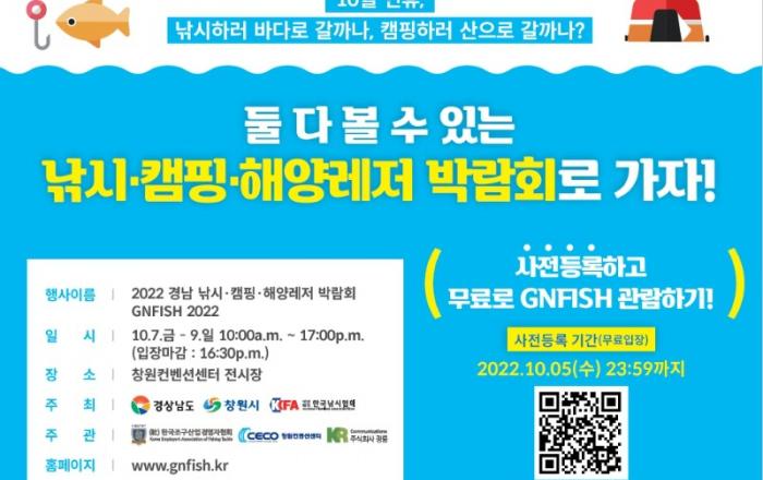 창원특례시,‘경남 낚시·캠핑·해양레저 박람회’개최창원에서 바다 보고, 경품도 받아 가고! 다양한 볼거리와 이벤트 제공창원특례시(시장 홍남표)는 창원의 아름다운 해양관광지를 배경으로 한 경남 낚시·캠핑·해양레저 박람회가 10월 7일부터 9일까지 창원컨벤션센터에서 개최된다