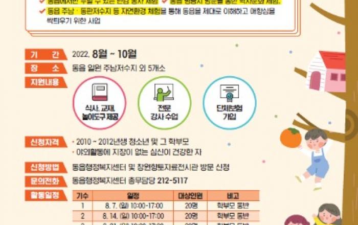 『미래세대 동읍알기』문화체험 프로그램 운영- 학습과 재미 두 마리 토끼를 잡을 여름방학 최적의 문화체험 - 창원특례시 의창구 동읍(읍장 이광호)은 미래세대인 어린이들에게 다양한 문화 체험 활동의 기회를 제공하기 위해 『미래세대 동읍알기』 문화 체험 프로그램을 운영한다