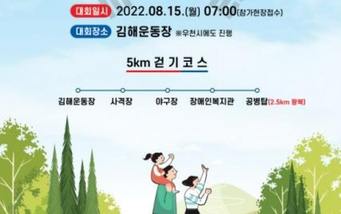 김해시 광복절 기념 숲속 둘레길 걷기대회김해시가 광복 77주년을 맞아 오는 15일 ‘8·15 광복절 기념 평화통일염원 숲속 둘레길 걷기대회’를 개최한다.김해운동장을 출발해 사격장, 삼계야구장, 장애인복지관을 경유해 공병탑을 반환점으로 되돌아오는 약 5㎞의 코스(왕복 9