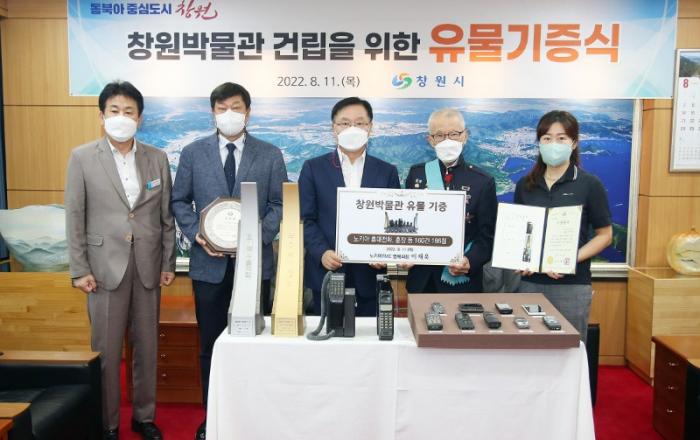 이재욱 前노키아TMC 명예회장, 창원특례시에 유물 186점 기증마산공장에서 생산된 휴대전화 전 모델 등창원특례시(시장 홍남표)는 11일 오전 10시 접견실에서 창원박물관 건립을 위해 모바일 산업 관련 유물을 기증한 이재욱 前노키아TMC 명예회장에게 기증증서 및 감사패를