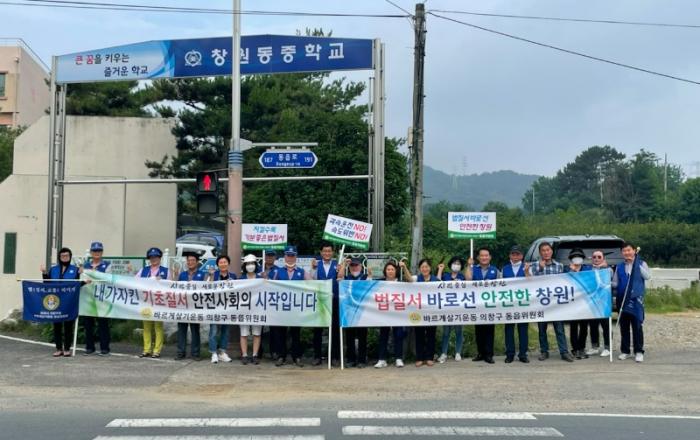 의창구 동읍 바르게살기위원회, “바른 질서! 바른 사회!”- 기초 질서 지키기 캠페인 전개로 선진 문화 확산에 앞장 서 -창원특례시 의창구 동읍 바르게살기 위원회 (회장 최성철)는 6일 오전 관내 초등학교, 회전교타리 등에서 올바른 교통질서 확립을 위한 교통 캠페인을