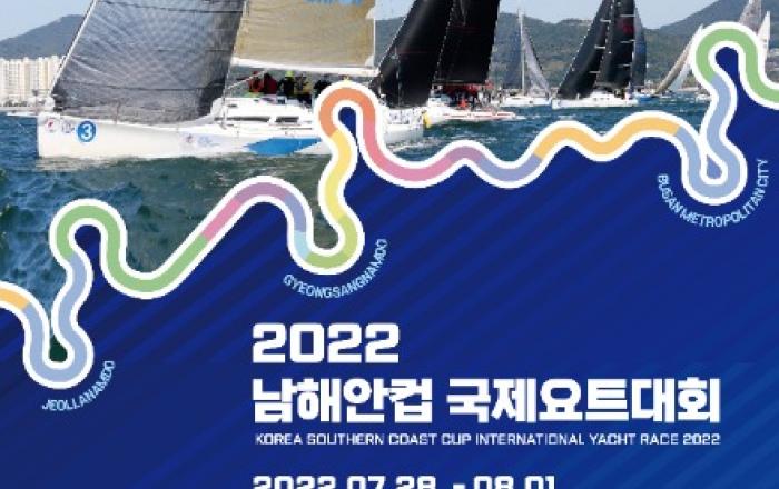 한여름 무더위 날릴 남해안의 요트 명승부!- 7월 28일~8월 1일, ‘2022 남해안컵 국제요트대회’ 경남·부산·전남 공동개최- 여수~통영~부산을 잇는 남해안 횡단 요트경기, 요트관광 항로 개척- 7개국 요트 25척과 선수‧임원 300명 참가, 남해안을 국제적 해양레
