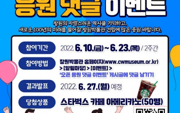 창원박물관 공식 홈페이지 서비스 오픈새로운 100년의 미래를 열어갈 창원박물관 건립에 많은 응원 바랍니다.창원특례시는 2026년 준공을 앞두고 있는 창원박물관의 성공적 추진을 위해 건립현황, 소장품 기증 및 구입 등의 정보를 제공하는 공식 홈페이지(www.cwmuseu