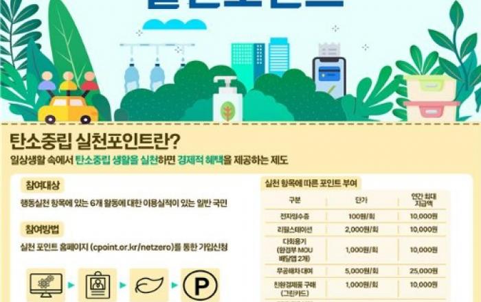 일상 속 탄소중립 실천하면 혜택으로 돌아옵니다. - 탄소중립 실천 확산을 위해 올해부터 탄소중립 실천포인트 제도 신규 시행- 전자영수증 발급 등 탄소중립 실천 시 1인당 연간 최대 7만 원 지급 경상남도는 일상 속 탄소중립 실천문화 확산을 위하여 그간 추진해온 탄소포인