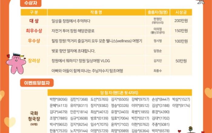 창원시“지금껏 몰랐던 창원 일상 속 여행거리 발견해요”‘창원일상 여행 유튜브 영상 공모전’ 수상작 및 이벤트 당첨자 발표창원시(시장 허성무)는 쉽게 호응할 수 있는 창원 일상여행 콘텐츠 발굴과 일상여행 활성화를 위해 추진한 ‘창원일상 여행 유튜브 영상 공모전’의 심사