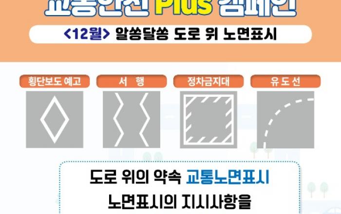 창원시, ‘알쏭달쏭 도로 위 노면표시 알기’ 캠페인 전개노면표시 의미만 알아도 교통사고 예방 및 소통 향상 가능창원시(시장 허성무)는 올해 교통안전 문화 확산을 통한 시민 일상 플러스 성장 실현을 위해 매달 새로운 주제로 ‘교통안전 플러스 캠페인’을 펼치고 있다고 7일