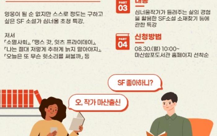 마산합포도서관에서는 책 읽는 사회적 분위기 조성을 위하여 '9월 독서의 달' 행사를아래와 같이 운영하오니 많은 관심과 참여바랍니다. 가. 행 사 명 : 9월 독서의 달 나. 기 간 : 2021. 9. 1.(수) ~ 9. 30.(목) 다. 장 소 : 마산
