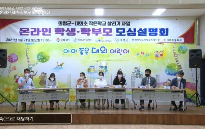 경남 작은학교 살리기 학생·학부모 모집 설명회 성료 - 의령군-대의초(21일), 함양군-유림초(28일) 설명회 온라인으로 개최- 많은 관심 받은 공공임대주택 입주자 모집 10월 예정- 설명회 영상 사회관계망서비스(밴드)에서 재시청 가능 경남도와 도 교육청, 한국토지주택