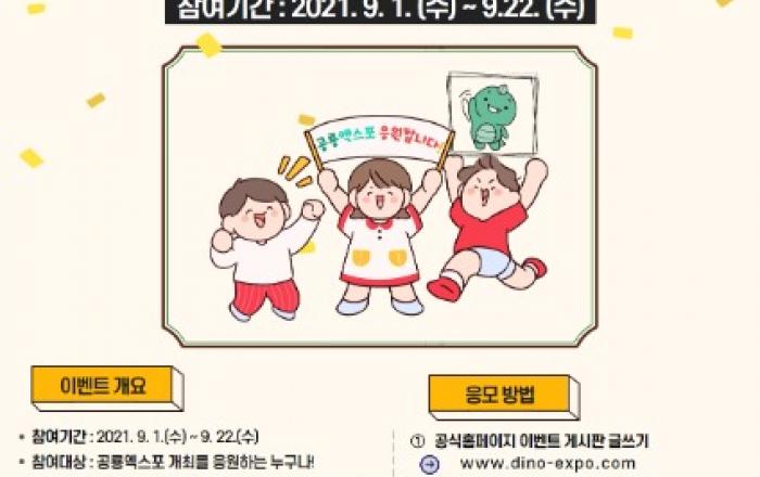 우리 함께 준비해요, 다섯 번째 경남고성공룡세계엑스포![엑스포사무국]- 모두가 함께하는 고성공룡엑스포 응원 포토모자이크 제작 이벤트 시작!(재)경남고성공룡세계엑스포조직위원회(위원장 백두현)는 2021경남고성공룡세계엑스포가 한 달여 앞으로 다가옴에 따라, 9월 1일부터