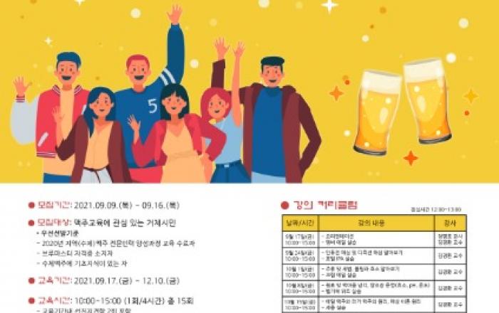 「2021년 고현동 주민역량강화사업」 지역맥주 사업화과정 교육생을 아래와 같이 모집하오니, 관심이 있는 분들은 신청해주시기 바랍니다.○ 모집기간 : 2021.9.9.(목) ~ 9.16.(목)○ 모집대상 : 맥주교육에 관심이 있는 거제시민 *우선선발기준(2020년 맥주