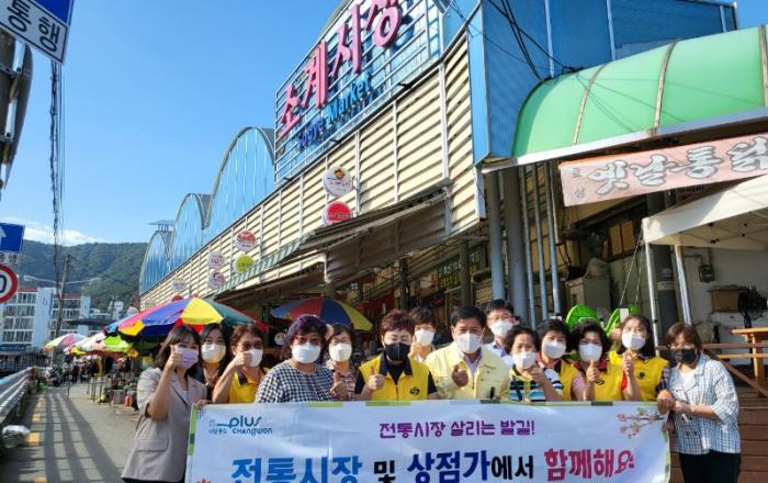 추석에는‘전통시장’이용하고‘창원경제’살리고- 의창구청장, 추석맞이 전통시장 활성화 캠페인 및 장보기 나서 -창원시 의창구(구청장 황규종)는 15일 관내 전통시장인 소계시장에서 의창동 통장협의회, 소계시장 상인들과 함께 추석맞이 장보기 및 전통시장 이용 활성화 캠페인을