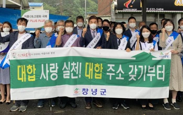 대합면 인구증가 릴레이 캠페인 진행= 살기 좋은 대합면으로 귀농·귀촌 하세요 = 창녕군 대합면(면장 이성봉)은 지난 7일 대합 전통시장 일원에서 ‘살고 싶고, 있고 싶은 창녕 주소 갖기 운동’의 일환으로 인구증가 릴레이 캠페인을 진행했다. 이날 릴레이 캠페인에는 대