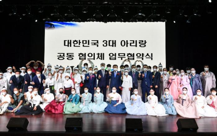 - 아리랑 세계화를 위하여 밀양시, 정선군, 진도군 손 잡아 -밀양시(시장 박일호)는 22일 정선군청에서 정선군과 진도군이 함께하는 「대한민국 3대 아리랑 공동협의체」 협약식을 개최했다.이번 협약은 우리나라를 대표하는 아리랑을 보유한 지방자치단체가 아리랑 관련 연구,