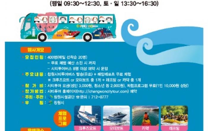 해양레포츠 연계 시티투어버스 운영❍ 이벤트 개요 ◦프로그램명 : 해양레포츠 연계 시티투어버스 운영 ◦기 간 : '21. 7. 1.(목) ~ 8. 31.(화) ※ 휴무일 : 매주 월요일 - 평 일 : 09:30 ~ 12:30 / 토․일 : 13:30
