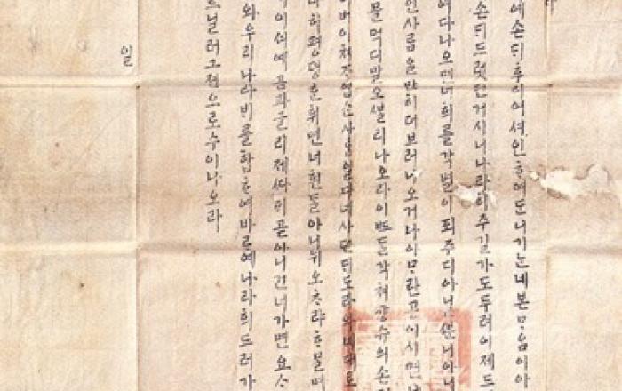 한글이 만들어낸 김해 최고의 보물 ‘선조국문유서’김해로 돌아와 안동권씨 종친회 기탁…내달 개관 김해한글박물관서 공개 조선시대 언어 형태 잘 반영 순 한글 작성 최초 공문서 김해시는 임진왜란 당시 백성들이 널리 읽을 수 있도록 순 한글로 작성한 최초 공문서인 ‘선조
