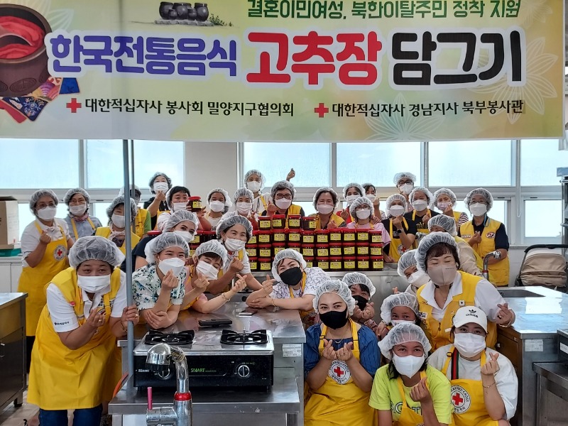 대한적십자 밀양지구협의회(회장 신영하)는 지난 20일 대한적십자사 경남지사 북부봉사관에서 결혼이주여성과 함께하는 ‘고추장 담기 행사’를 가졌다.