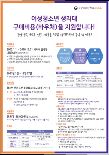 2021 여성청소년보건위생용품 지원사업 안내