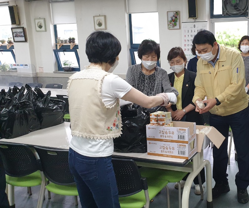 또한 장기간 코로나-19 확산에 따른 무료급식소 운영 중단으로 노인들의 결식을 예방하기 위하여 지원 중인 대체식의 위생 및 포장상태, 전달 체계 등을 점검하고, 자원봉사자들의 노고를 격려했다.
