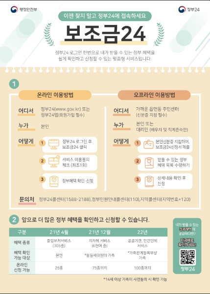 「보조금24」서비스 신청 안내