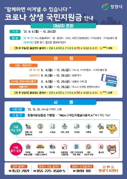∘ 지급방법 : 신용・체크카드 충전온・오프라인, 모바일 창원사랑상품권온라인, 선불카드읍면동