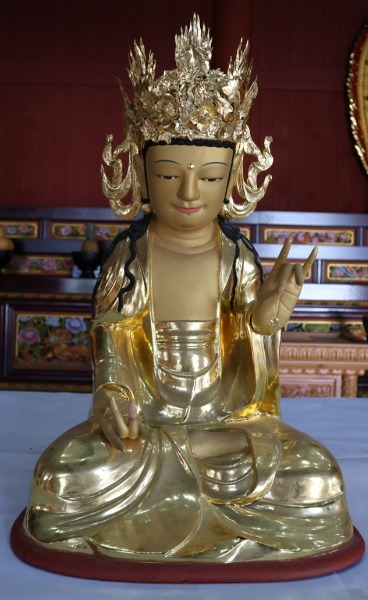 「창원 정법사 목조관음보살좌상」은 양산 통도사에 있던 것을 정법사 개창 후 이운한 것으로 가늘고 긴 상반신에 넓은 하반신의 신체 비례, 큼직한 코에 입꼬리가 올라간 큰 입술과 밝은 표정, 가늘고 길쭉한 손, 발끝을 덮어 아래로 흘러내리는 둥근 옷자락 등의 형태를 통해 17세기 후반에 조성된 것으로 추정되며 조선 후기 불상의 특징을 따르면서도 개성 있는 무염계(無染系) 조각승의 표현기법을 잘 보여주고 있다.