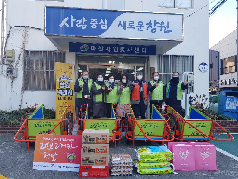 창원시(시장 허성무)는 12일 창원시자원봉사센터와 한화에어로스페이스 민간협력사업으로 폐지를 줍는 저소득층에게 사랑의 리어카 4대를 제작·전달했다.
