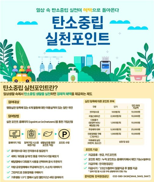 - 탄소중립 실천 확산을 위해 올해부터 탄소중립 실천포인트 제도 신규 시행