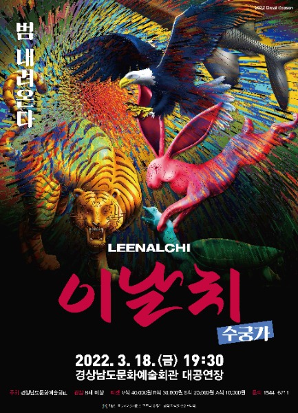 2022년 상반기 첫 기획공연으로 경상남도문화예술회관(관장 강동옥)이 오는 18일 저녁 7시 30분 <이날치 ‘수궁가’>를 개최한다.