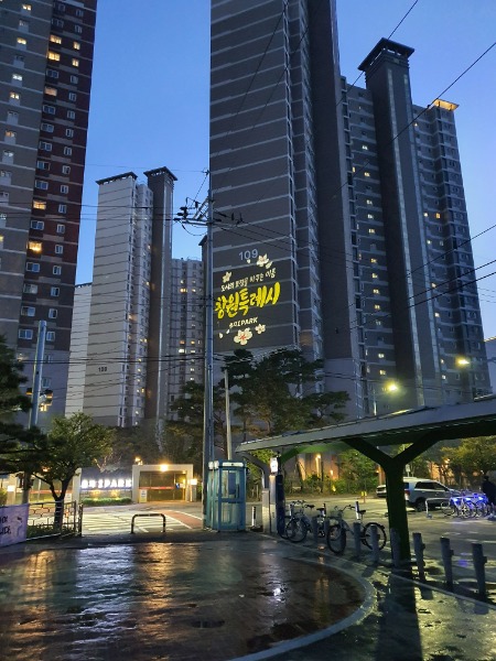 야간에 아파트 외벽 활용한 로고라이트 점등으로 시민 볼거리 제공