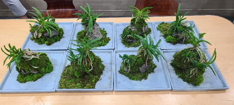 살려주는 석부작을 만들었습니다. 자연석을 돌판 위에 적당히 위치를 잡고 붙인 다음 풍란을