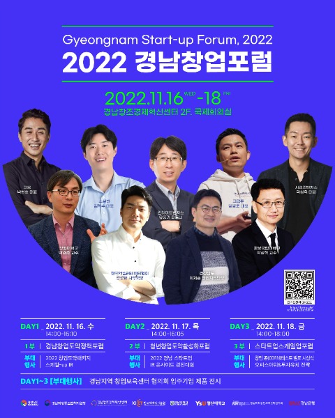 경상남도(도지사 박완수)와 경남창조경제혁신센터는 16일부터 18일까지 3일간 경남창조경제혁신센터 2층 국제회의실에서 ‘2022년 제1회 경남창업포럼’을 개최한다.