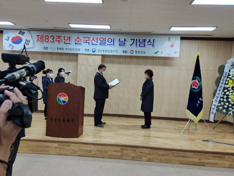 경상남도 권양근 복지보건국장은 “경상남도는 독립투사의 자랑스러운 모습을 영원히 기억할 것”이며 “국가를 위해 희생하신 분들이 더욱 존경받고 예우 받을 수 있도록 최선을 다하겠다”고 말했다.