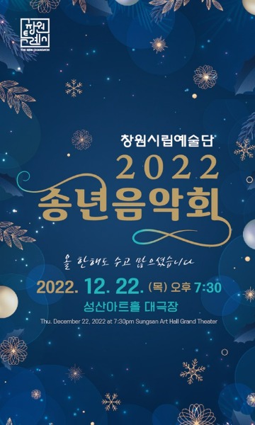 창원특례시(시장 홍남표)는 “2022 송년음악회”를 오는 12월 22일(목) 오후 7시30분 성산아트홀 대극장에서 개최한다고 밝혔다.