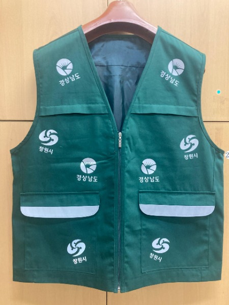 행사 진행요원임을 쉽게 알 수 있도록 조끼 표면에 ‘경상남도’와 해당 시·군 심벌마크를 부착하고, 뒷면 하단에 ‘경상남도’와 해당 시·군 명칭을 표기하였으며, 야간행사에서도 쉽게 알아볼 수 있도록 은색의 반사 원단과 필름을 사용한 것이 특징이다.