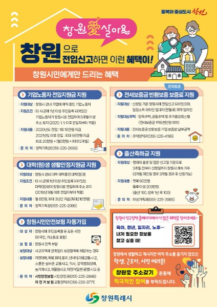 시는 이달부터 유관기관, 기업, 대학, 기숙사 등을 방문해 지속적인 인구감소 심각성을 공유하고, 창원시에 주소를 두지 않은 근로자, 학생, 시민 등 숨은 인구를 찾아 분야별 각종 혜택과 시책 등을 알리며 전입을 독려하고 있다.