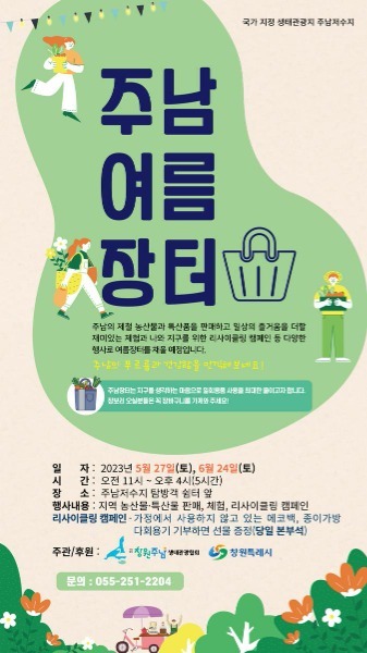 오는 27일 ‘주남 여름 장터’는 오전 11시부터 오후 4시까지 주남저수지 탐방객편의센터 앞 공터에서 개최되며 6월과 9월부터 11월까지 매월 마지막 주 토요일에 4회 더 개최될 예정이다.