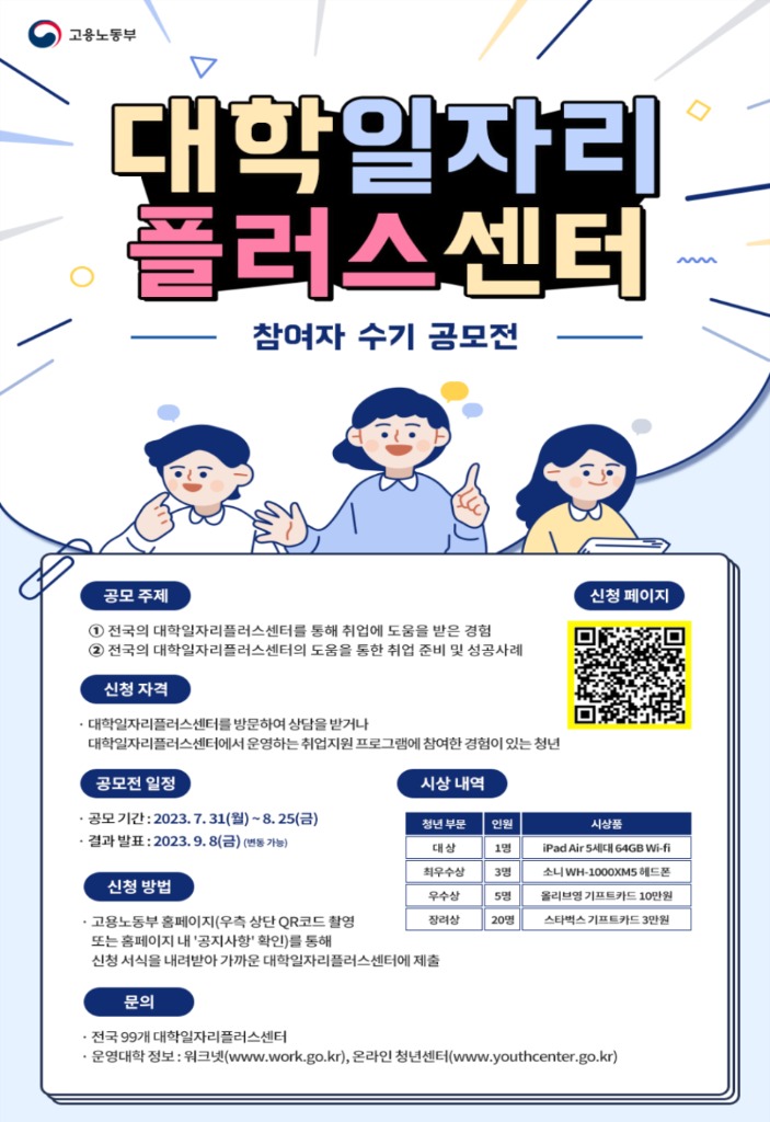 지난해부터 한 번이라도 대학일자리플러스센터를 방문한 청년과 해당 센터의 소속 직원은 누구나 참여 가능하다. 접수 방법 등 상세한 내용은 고용노동부 누리집과 각 대학일자리플러스센터를 통해 확인할 수 있다.