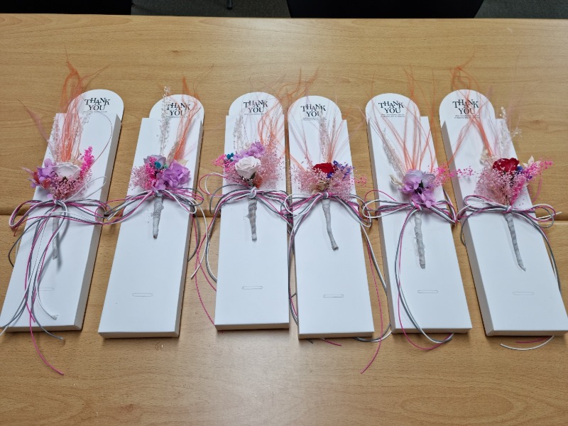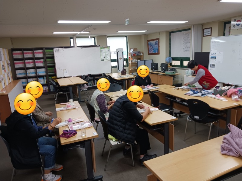경남조은장애인평생학교 1교시 창.체 수업 후, 2교시 토탈 공예 시간에 비누 장미, 프리저비즈 꽃 종류 재료들을 활용하여 선물 포장 만들기를 하며 리본 공예도 해 보았습니다.