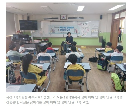사천교육지원청 특수교육지원센터가 오는 7월 8일까지 지역 내 초등학교 9개교, 중학교 5개교 학생들을 대상으로 찾아가는 장애 이해 및 장애 인권 교육을 진행한다고 6일 밝혔다.