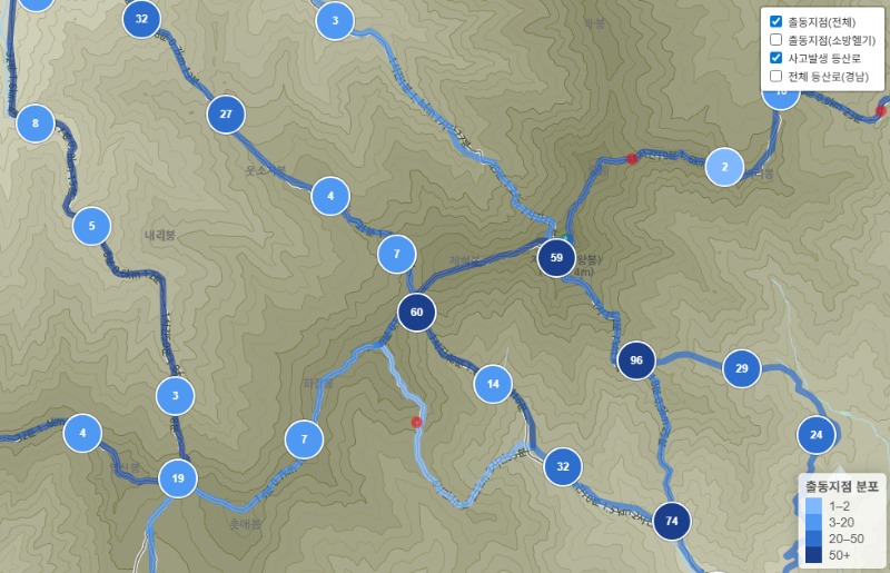 소방본부가 최근 6년간(2020년 1월 ~ 2025년 8월) 구조·구급 활동 약 42만 건과 산림청 등산로 공간정보를 분석한 결과, 봄·가을철에 사고가 집중되며 특히 10월에 가장 빈발하는 것으로 나타났다.