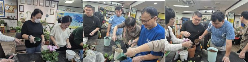 뜨레봄의 발달장애인들이 다육식물을 심으며 정성껏 화분에 옮겨 심겨 심는 원예 체험활동을 하였다.